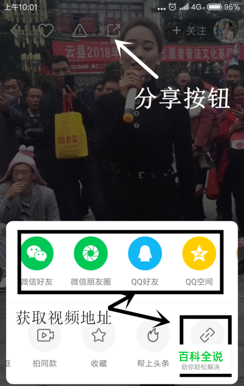 打开快手短视频APP,点开某个视频,点击左上角分享按钮,在分享弹框中滑动,找到复制地址选项,点击复制链接或通过分享到微信QQ等方式获取获取视频链接地址。获取地址后发送到电脑端
