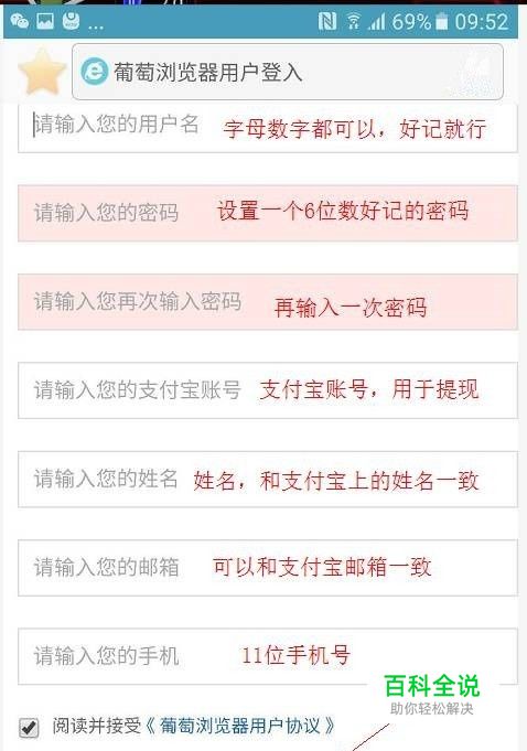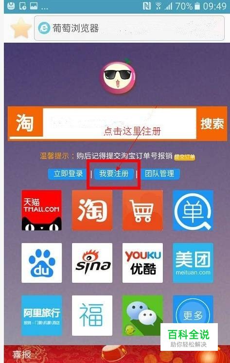 下载”葡萄浏览器“APP,在首页点击“我要注册”