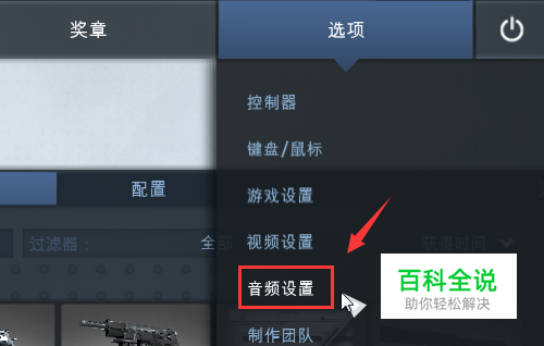 打开后,在页面右上部点击“选项”,弹出下拉菜单,点击“音频设置”,如图所示