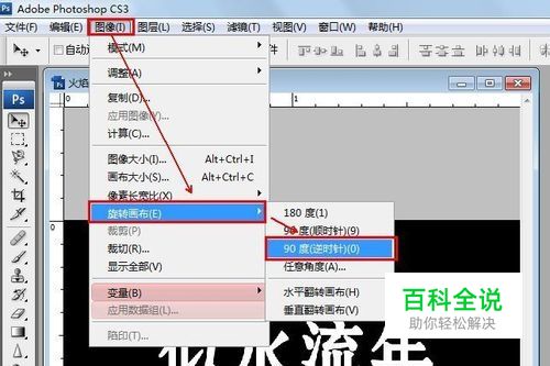 执行“图像-旋转画布-90度(逆时针)”。顺时针也是可以的,看完就明白了,这里先按逆时针做。