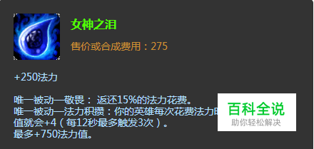 之后便可以选择将第二件女神之泪做出来。因为这时候魔宗差不多已经合成魔切了,这时候再做女神之泪就不会受到唯一被动的影响,法力值的叠加上面受到影响了。