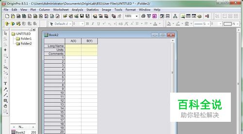 首先打开该软件,双击originpro85.exe即可打开该软件,软件界面如上图所示。默认会弹出一个表格。