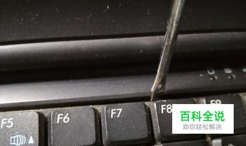 翻到正面用一字螺丝刀从键盘上方缝隙轻轻撬开电脑键盘(有的电脑键盘底部有双面胶,一定要小心操作)