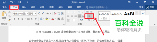 首先我们要设置某一段的行距,将鼠标光标点击到这一段话中,然后 “开始”里面找到 如图所示的图标,进行点击。当然用鼠标拖动选择一段话也可以的。