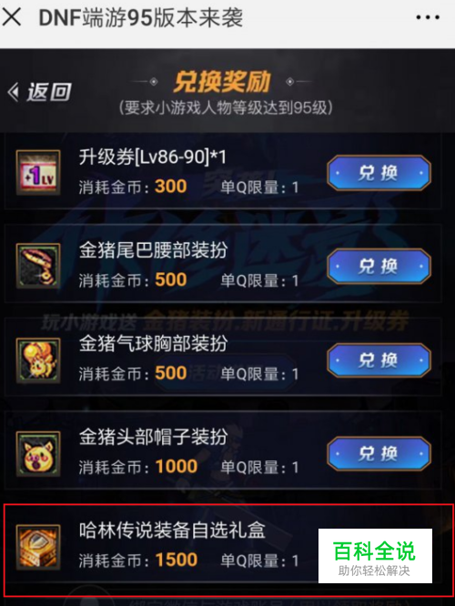 微信小游戏活动 这个活动在微信小游戏程序里选择DNF体验95版本,这个活动其中就给一件哈林史诗的传说坯子