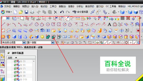 打开UG软件,随意打开一个产品,用来演示过程中的一些实验,下面以我的一个产品进行实验,大家可以看到工具实在是太多,很难找的;
