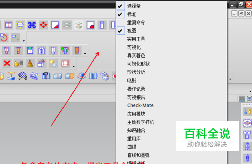 我们在工具条的空白处,任意地方右击,这时会弹出一个选项工具条,如图所示: