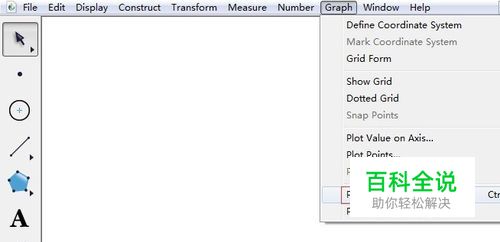三、画正比例函数图像 正比例函数属一次函数,但一次函数却不一定是正比例函数。正比例函数是一次函数的特殊形式,即一次函数 y=kx+b 中,若b=0,即所谓“y轴上的截距”为零,则为正比例函数。 比如正比例函数y=2x,绘制其图像具体步骤如下: 步骤一 建立坐标系。打开几何画板软件,鼠标按住左侧自定义工具按钮不放,在弹出的快捷菜单选择“经典坐标系”——“蚂蚁|直角坐标系”,建立如下图所示的平面直角坐标系。