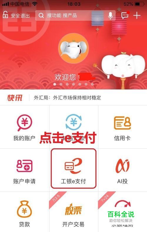 1.首先打开工商银行手机银行,找到工银e支付,并点击