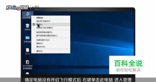 确定电脑没有开启飞行模式后,右键单击此电脑,进入管理