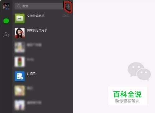 打开微信主界面,在右上角有“+”
