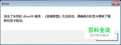 很多热爱英雄联盟游戏的玩家发现近期英雄联盟进不去了,每次进游戏的时候都会提示“发生未知的Directx 请确保你的显卡更新了最新的版本”这个问题该如何解决呢下面就由我带个大家解决方案。