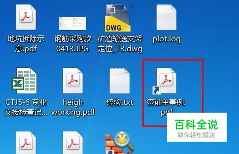 如图,在我的桌面上有一个文件,名字叫做签证单事例.pdf。现在我们来双击打开。。。跳出错误提示窗口 - 快捷方式存在问题。