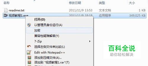 在要加密的文件上单击鼠标右键,然后在弹出菜单中选择加密选项。