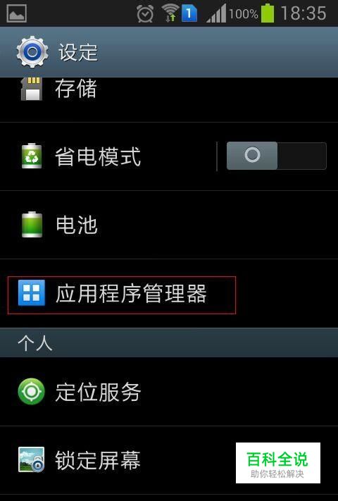 首先打开系统设置中的“应用程序管理器”