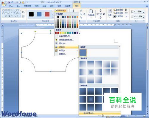 在Word2007文档中为自选图形设置渐变颜色填充
