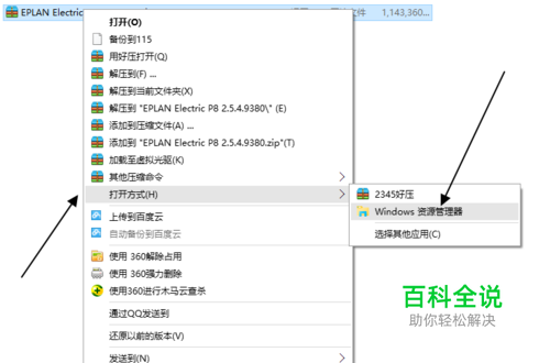 首先我们找到要打开的ISO镜像文件,比如本文以EPLAN Electric P8 2.5.4.9380.iso的ISO镜像为例,我们右键点击它,然后选择“打开方式”-“资源管理器”,如下图所示