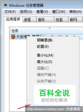 任务管理器中手动关闭 在任务栏上空白地方,点击鼠标右键,选择启动任务管理器(或在开始运行输入task,并按下回车键)。如何判断进程名?可以参照任务管理器中的应用程序选项卡中的未响应程序名,找到该程序然后再鼠标右键选择转到进程,WIN7会自动帮你跳到该程序对应的进程项目。 选中未响应程序的进程名,然后点击结束进程并确认(如下图)。不过在结束进程前,需要注意以下两项: ■请再次确认该未响应程序是否涉及需要保存的重要数据,比如文档、剪切板等数据,请在结束之前尽可能的尝试先保存数据。 ■结束进程不排除会导致死机、自动重启现象,所以其它进程如果正在运行重要数据也需要保持,清场后再尝试结束进程,放置扩大影响。不过该方法结束进程也经常不太奏效,再尝试在该进程上鼠标右键选择“结束进程树”,如果还不行可以尝试下面的命令行方式。