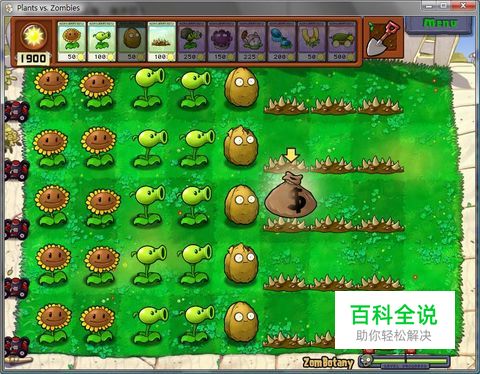 攻略:此关攻略很少见,只好用了我这个过法(不是骄傲哦)。 僵尸来时先放墙果再放豌豆,一个Flag放地刺即可,记着随时补墙果。