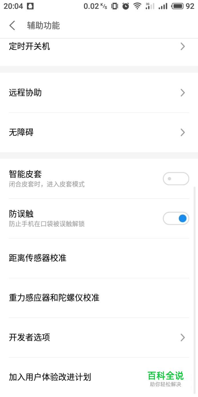 进入辅助功能设置界面,在下方选项中点击“重力感应器和陀螺仪校准”