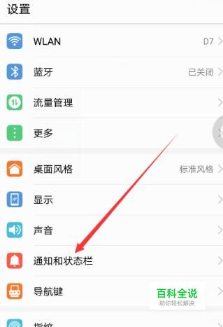 进入设置之后,点击“通知和状态栏”,进入下一界面。