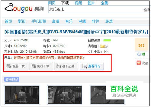 所以迅雷狗狗会屏蔽这些电影的下载,尽管你搜到了电影,但是还是下载不了,会显示“该资源为版权方声明保护内容,狗狗已屏蔽其下载”,如下图: