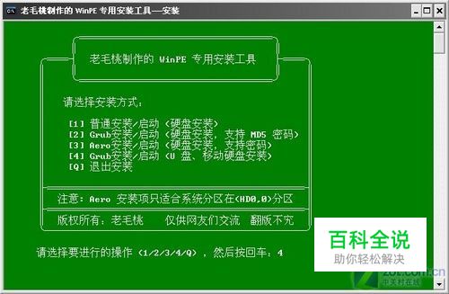 先到网上去下载一个叫“老毛桃WinPE”的工具到硬盘里,再把U盘接在电脑上,然后按下面的步骤一步步来就可以制作一个能启动的U盘了。选第4项,然后回车输入U盘的盘符,然后回车来到格式化步骤,按默认的设置,点“开始”就行顺利格式化引导部分