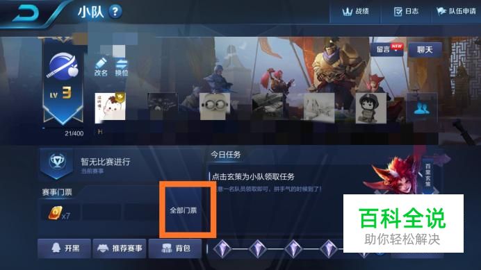 在小队的左下角有一个‘全部门票‘,我们点击一下它,然后点击‘使用‘。