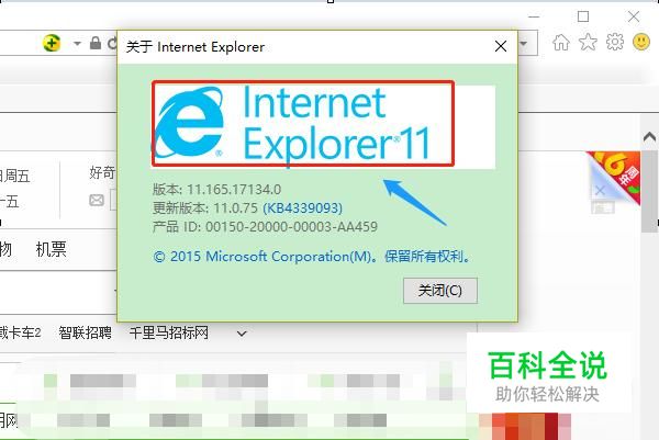 电脑里的浏览器有很多种,我们以IE浏览器为例作介绍,目前小编在用的是IE11版本,其他版本小编不敢保证方法是否一样,如图所示;