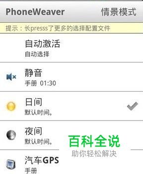 在生活和工作中,人们会根据不同场合,更改手机的一些设置来提高自己工作和生活的效率,比如会议需要静音、电量不足会调暗屏幕、晚上睡觉有人喜欢开启离线待机,这就是情景模式。在智能手机的普及的今天,情景模式的概念更加被广泛的理解和应用,手机自带的简单情景模式已经不能满足日常的使用。下面我给大家推荐一款软件智能情景模式————Phone Weaver 1.用户可以根据自己的需要添加足够多的情景模式,并且默认的五种模式也能重命名然后改成自己想用的模式 2.能够自动生成一个小图标在顶端状态栏中,提示用户当前所使用的是何种情景模式,为了方便辨认和使用,这些图标都能够改成别的样式或者设置关闭3.智能情景模式通知设置 4.智能情景模式的激活设定是一个非常贴心的功能。根据自己的时间安排设定好激活之后,智能情景模式能够在预定的时间自动将手机的状态转换为预设状态,而不必担心自己会因为繁忙而忘记 5切换通知铃声6.智能情景模式提供了移动上网、自动免提、彩信等多项数据连接和通讯的开关。