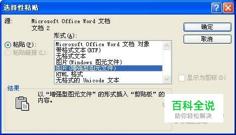 第二步:在选择性粘贴对话框中选择“图片(增强型图元文件)”→确定。