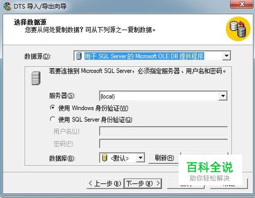 上一部打开到数据导入导出向导。根据向导的提示一步一步操作即可,注意填写数据库服务器的用户名密码要正确就基本没问题了。