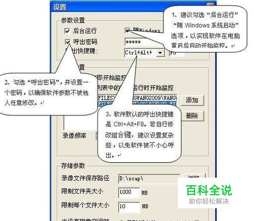 设置定时屏幕录像器的各项选项参数,点击"开始监控"可以开始监控,点击"后台运行"软件会隐藏到后台。