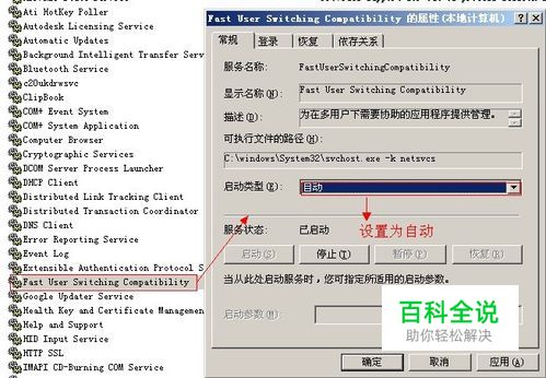 在服务中找到Fast User Switching Compatibility项,双击打开设置为自动。