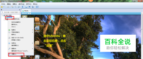 第一步,在Windows系统下建立一个共享文件夹; 步骤一: 选择Ubuntu,单击鼠标右键->选择“设置”。