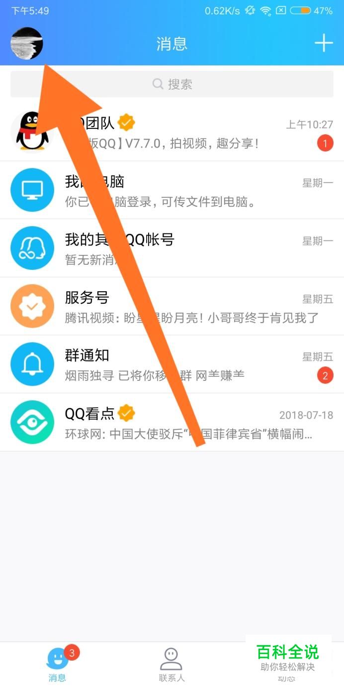 首先点击左上角的QQ头像。