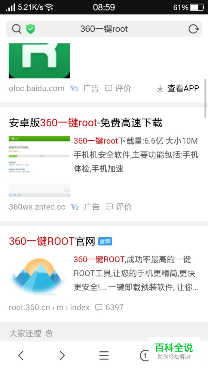 在手机浏览器,搜索360一键root,找到官方网站,点击手机下载。