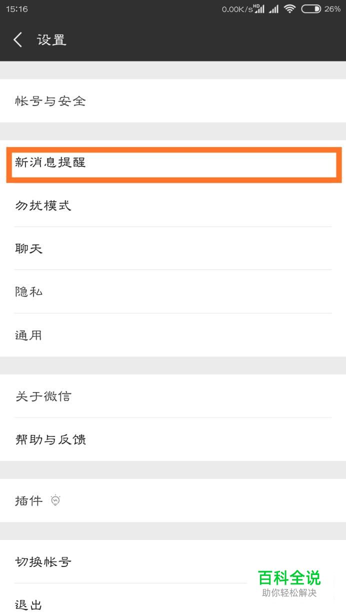 点击“新消息提示”,然后打开“接受新消息通知”,这样的话锁屏的时候就可以亮屏了。