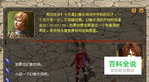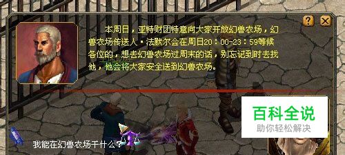 在幻兽农场开放期间,找到卡诺萨城中的幻兽农场传送人·法默尔(337,619),即可免费进入幻兽农场。