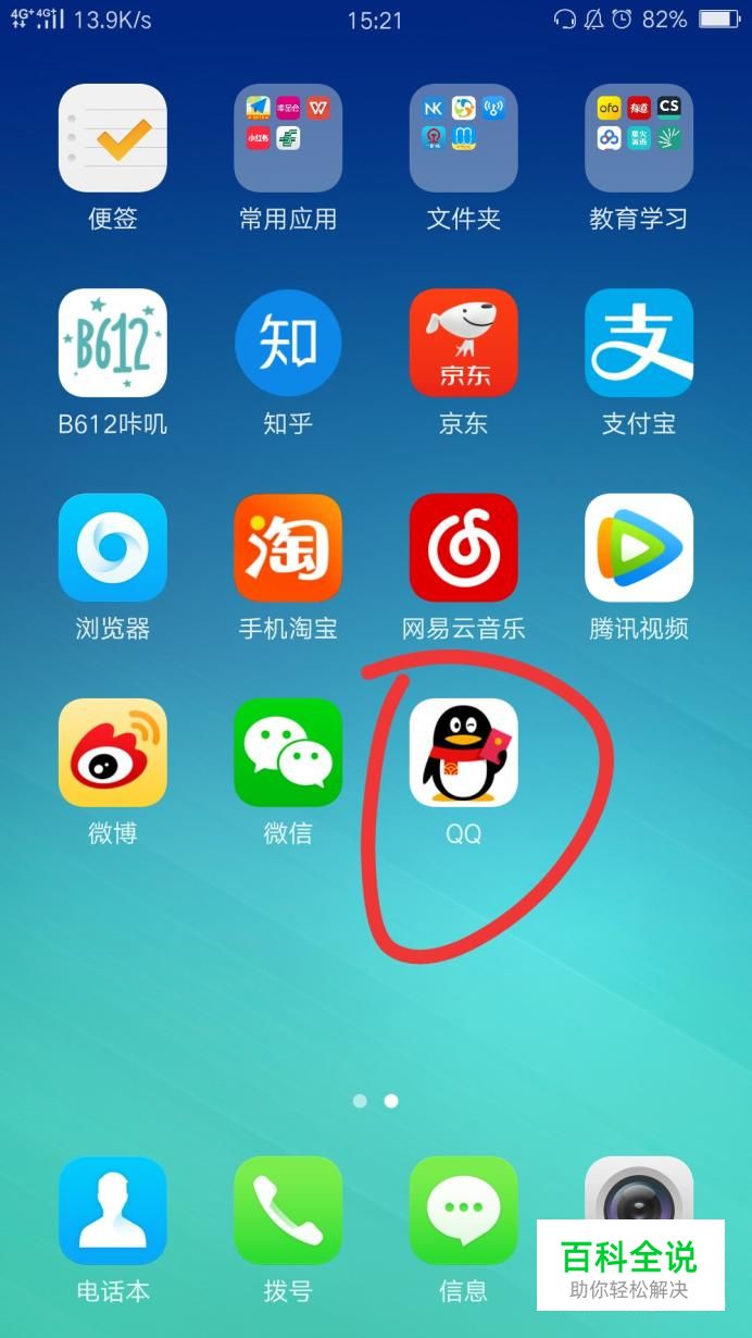 首先我们打开手机,找到qq的图标,然后点开。