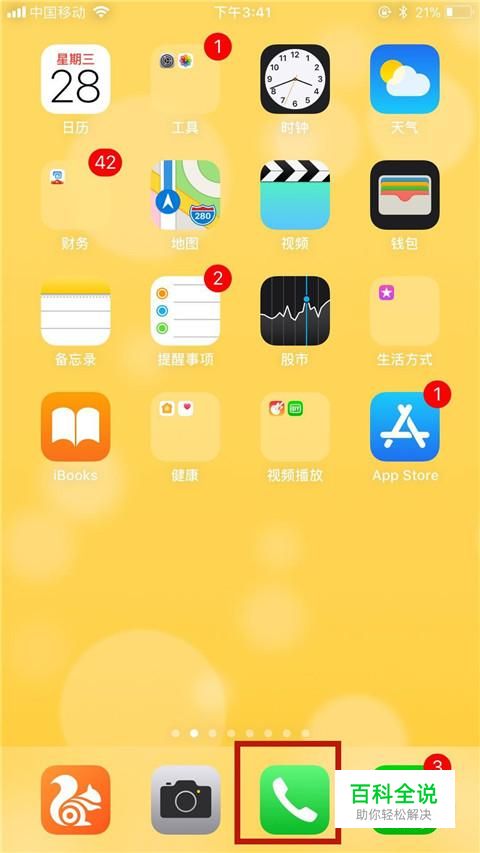 首先在我们的手机桌面上找到电话并点击它,如下图所示。