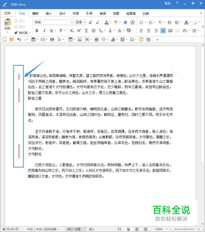 打开极速写作文档,可以看到文档左侧有几条红色竖线,这就是修订线。