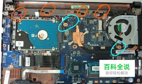 蓝色圈两个螺丝是键盘的螺丝,这两个拆下(可以拿新买的键盘比对一下螺丝孔位置,我是换好才标的) 红色圈是键盘卡扣,可以直接用手指拨出一点就可以退键盘了。