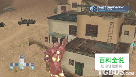 第三关:Fight Back Main Objective(主要任务目标):Destroy The Weapon Caches Without Harming Any Civilians(在不伤害居民的情况下摧毁敌人的武器储备) 次要目标:Weapon Crates Destroyed(摧毁7个武器箱)。 Total Enemies Killed(敌人消灭数量统计,所以要尽可能多的消灭敌人,影响过关评价)。 从第三关开始就要进入真正的战斗场面了。 这里敌人比较多,而且还有坦克车增援,威力较大,而且多半是火箭弹。所以一开始最好优先处理这些坦克车,建议不要飞行,同时选择Rockets(火箭弹)武器来对付坦克车,对自己有信心的也可以跑过去拆掉它们。其余分散的小兵火力很弱,用一般的Repulsors武器就可以秒杀掉。