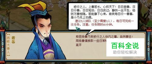 与NPC若谷对话,根据玩家等级随机领取到行善任务并进入到对应场景; 按照任务指引即可完成任务。