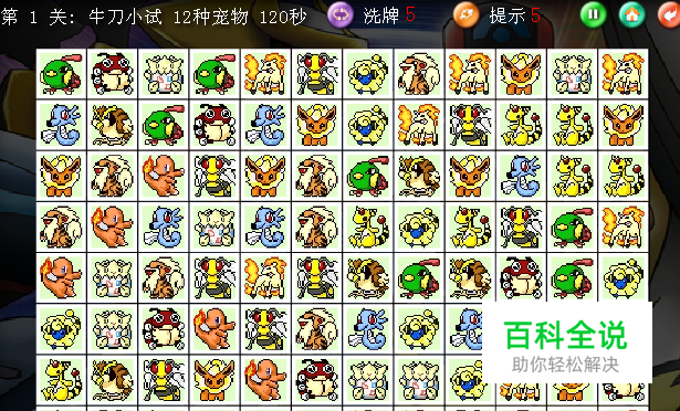 游戏简介 宠物连连看kawai版的FLASH游戏来咯!共13关,每关多两个可爱的宠物小精灵,每连接一对牌还有百分之一的幸运机会。要的就是眼明手快,来挑战吧。 游戏目标: 在有限的时间内,消去所有的宠物图案即可过关! 如何开始: 游戏加载完毕后点击【开始游戏】即可开始游戏。 操作指南: 点击两个相同图案,如果图案间的连线转折不超过两次并且不经过其他图案,即可消除。