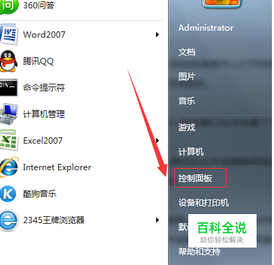 我们点击开始在菜单中找到“控制面板”点击进去