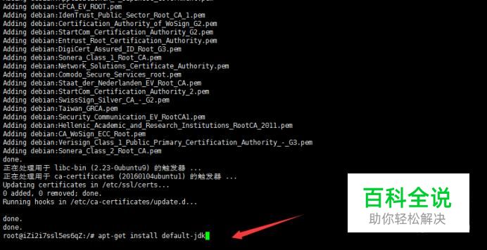 安装好jre之后开始安装jdk,输入apt-get install default-jdk命令,回车,Y,回车,等待安装完成