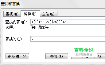 查找:([!^1-^127]{35})^13,意思是:查找所有中文汉字和标点([!^1-^127]),重复35次({35}),遇到一个回车(^13)为止。 替换:\1,意思是:保留找到的第一部分,及()中的内容。 记得选上“使用通配符”