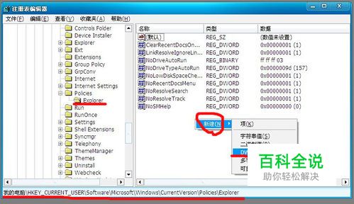 另在[HKEY_LOCAL_MACHINE]-->[Software]-->[Microsoft]-->[Windows]-->[CurrentVersion]-->[Policies]-->[Explorer]-->增加一个 DWORD 值